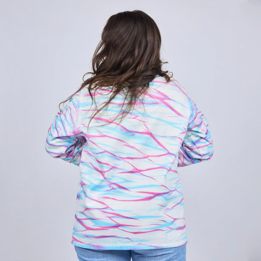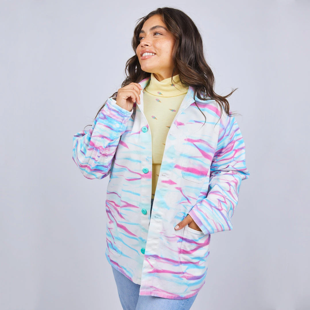 Get to work! You’ll be ready for anything in this light layer that goes with any look! Coordinating candy buttons add a fun pop to this style. Features two front pockets and a chest pocket. Need to get your sleeves out of the way? Features a wrist button to keep things tidy!