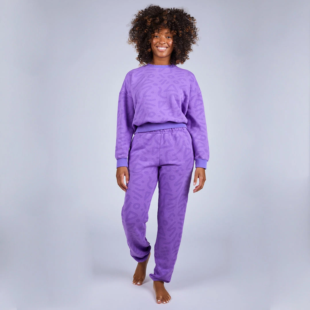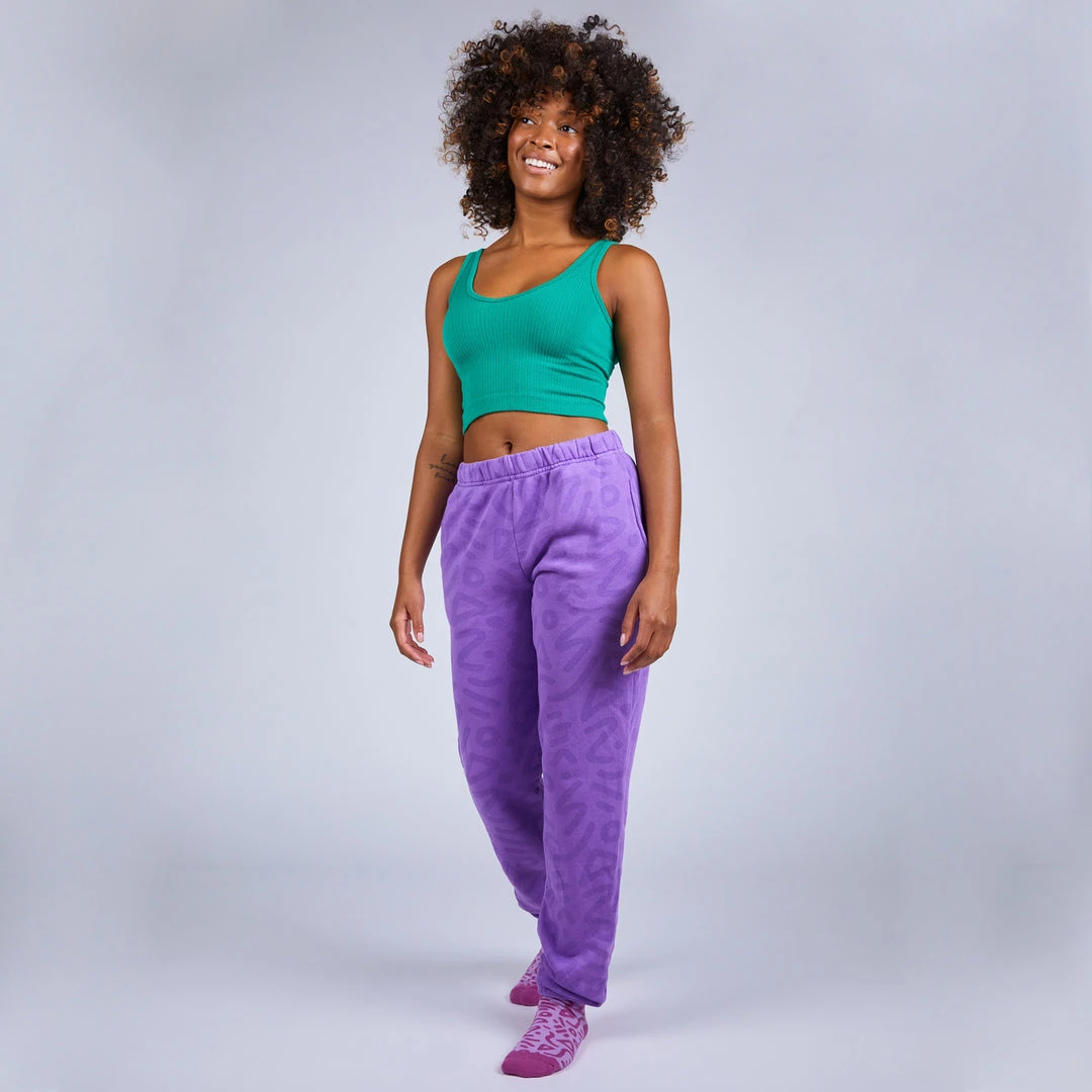Meet your new go-to lounge bottoms that are the perfect fit for staying at home or heading out. Features two side pockets and a back pocket with elastic ankle hem with our allover abstract Zap print. Each pair of sweatpants are individually cut, sewn, and dyed all in Los Angeles!