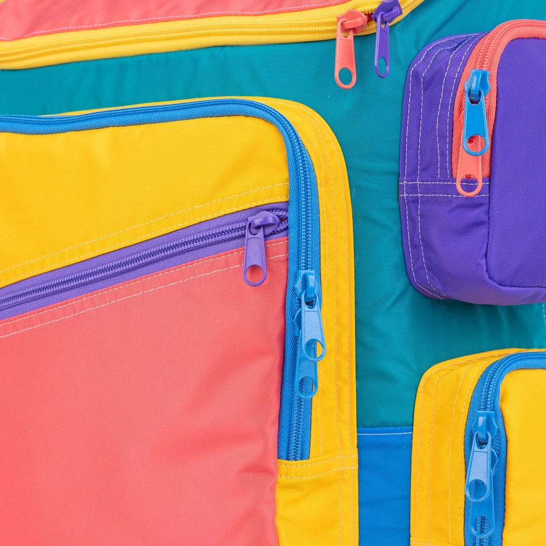 Explore the giant storage found inside our best selling Mega Backpack! This color blocked travel backpack boasts ultimate carrying power with 5 outside zip pockets, a truly MEGA main compartment, and hidden back-side pocket. Get ready to pack to your heart’s desire! Structured foam lining doubles as insulation so you can use your bag as a cooler. Giant front zip compartment with flat zip pocket for items that require easy access. Travel made simple with a suitcase handle sleeve to slide onto your luggage on-the-go!