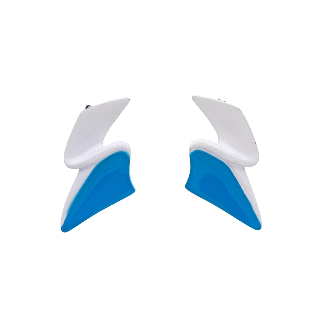 We uncovered hundreds of vintage dead stock earrings from the 1980s. This pair is made of metal with a two color lightning bolt design.