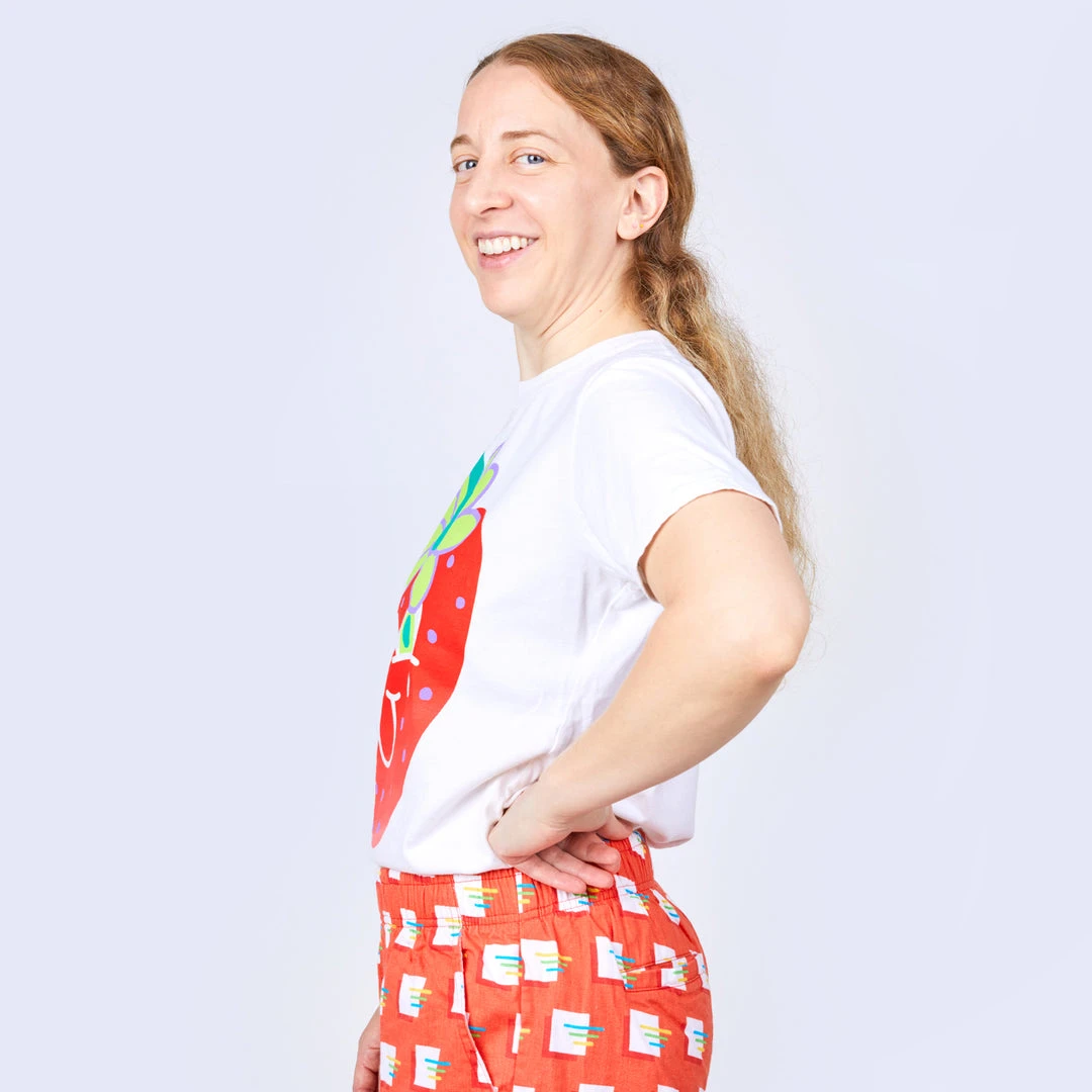 This rad heavyweight tee’s big happy fruit screen print sucks you right in with its juicy energy. Prepare to take a bite!
