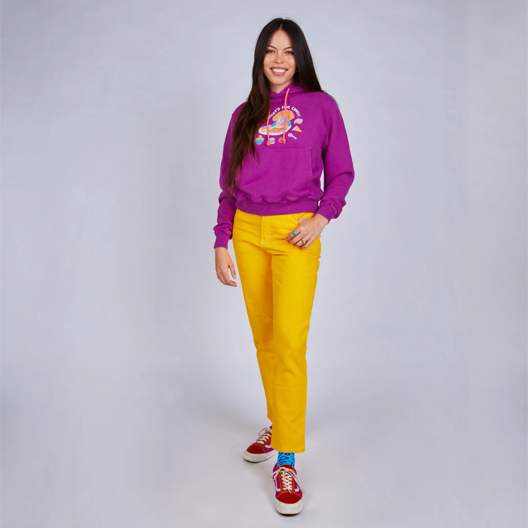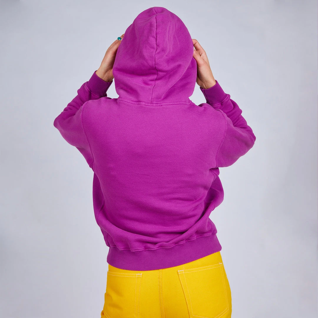 Heavy-weight, super breathable french terry fabric makes this piece the perfect plane outfit, movie theater sweatshirt or anytime you’re looking to get MAX COZY! Garment dyed a rich magenta with a front screen print design to help you get ready for lunch!