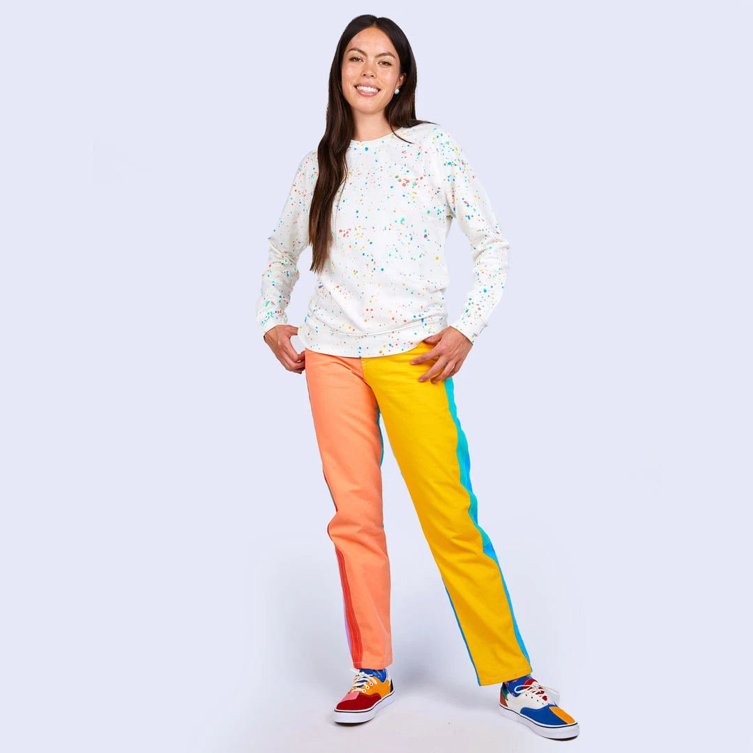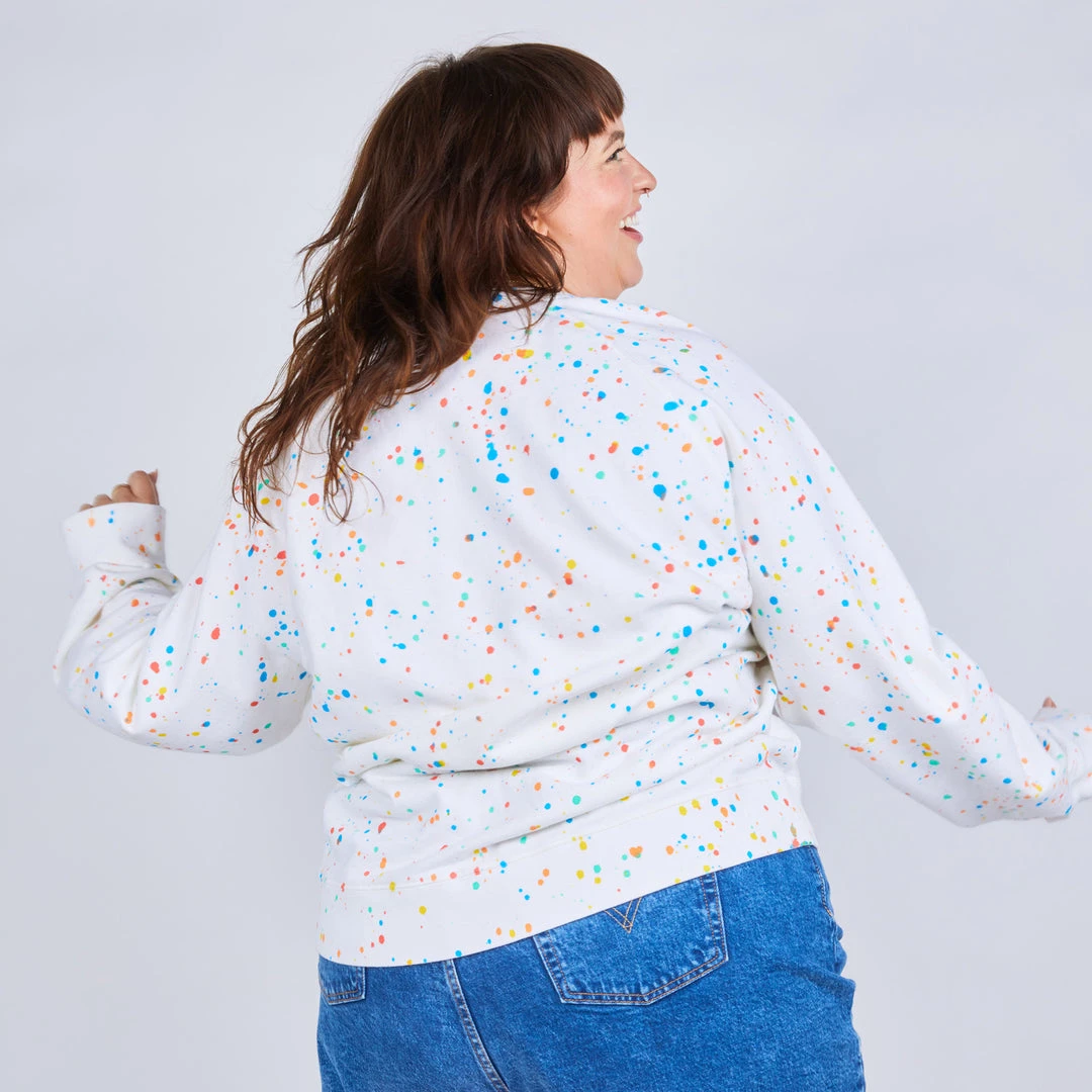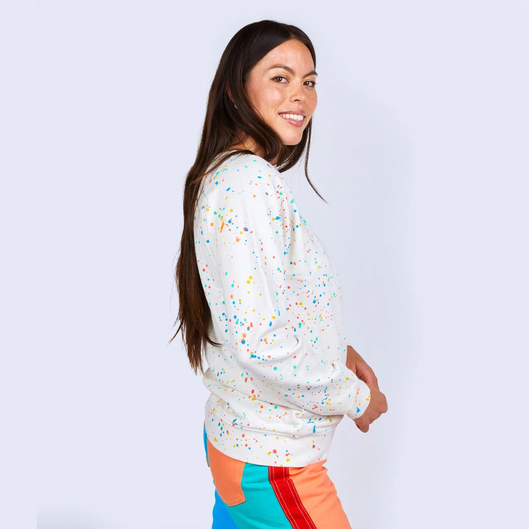 Looking for an easy layer no matter the season? You’ve come to the right place. This playful crew sweatshirt is super cozy and ready for action. Each sweatshirt is individually cut, sewn, dyed, and splatter painted with this fun palette to complement all of our other coordinating styles! Mix and match to perfection with all of our Paint Splatter products!