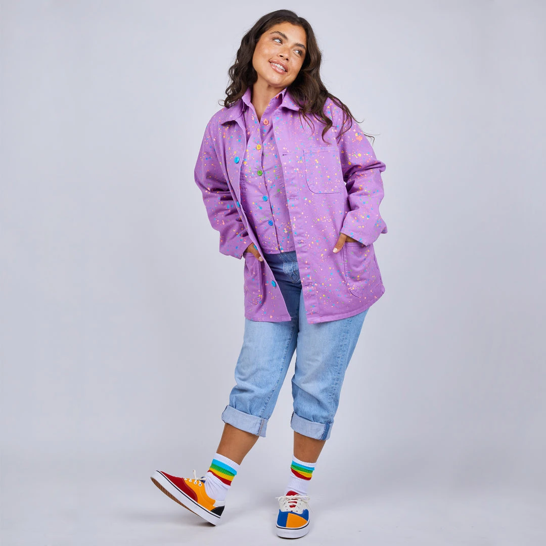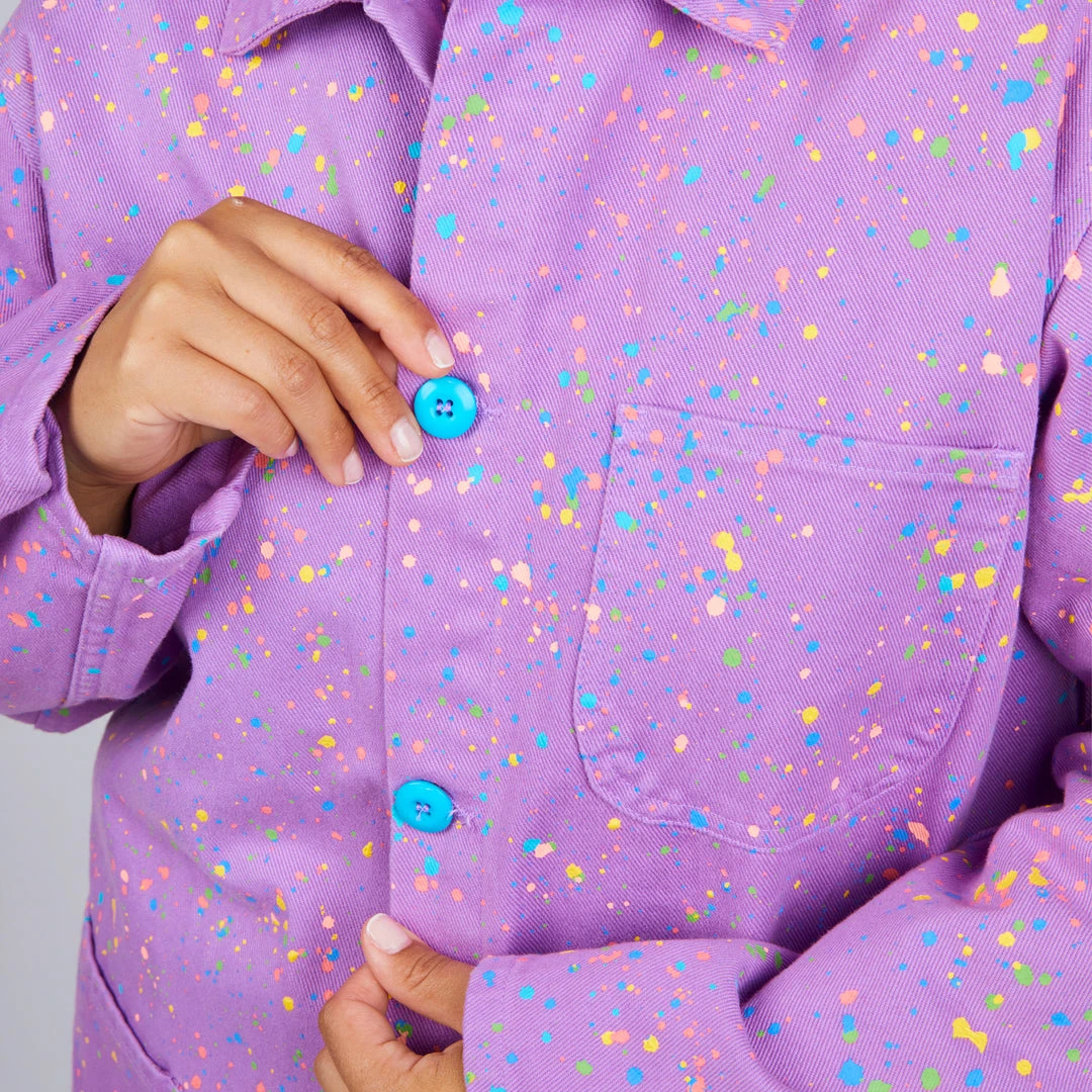 Get to work! You’ll be ready for anything in this light layer that goes with any look! Coordinating candy buttons add a fun pop to this style. Features two front pockets and a chest pocket. Need to get your sleeves out of the way? Features a wrist button to keep things tidy!