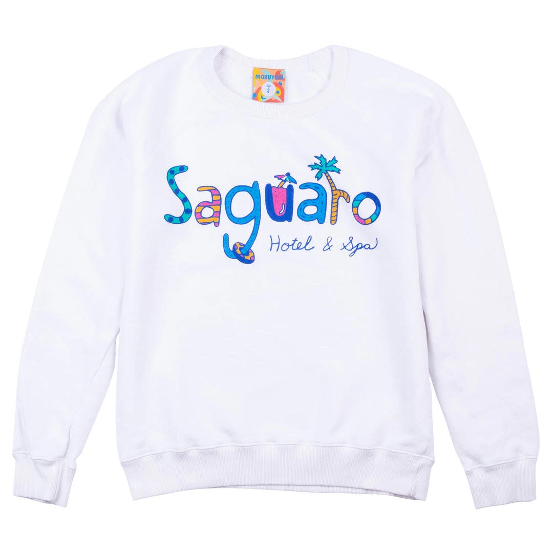 A classic crew sweatshirt with a fun screen printed type design