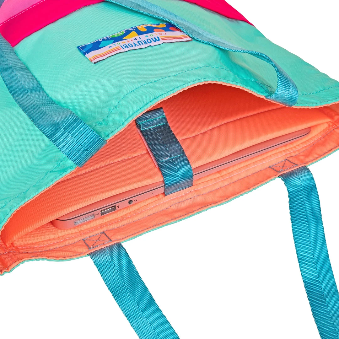 No more shoving your $$$ laptop into a floppy cotton tote! Protect those precious files and slide your computer into this rad bag: the easiest most minimal way to carry and protect your laptop on the go! The perfect size to bring just your essentials along with your laptop. Padded laptop compartment sleeve with optional protective padded flap and Velcro webbing closure.