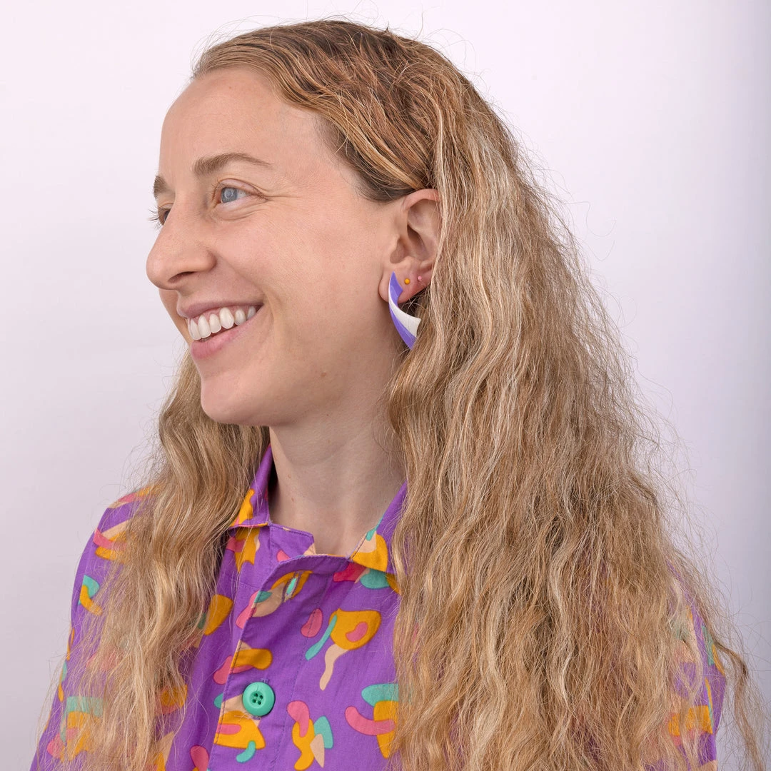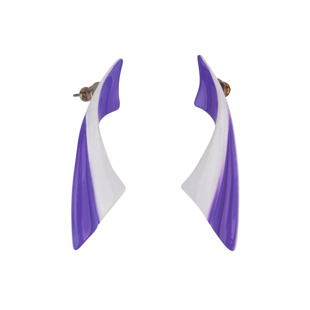 We uncovered hundreds of vintage dead stock earrings from the 1980s. This pair is made of metal with a two color crashing wave design.