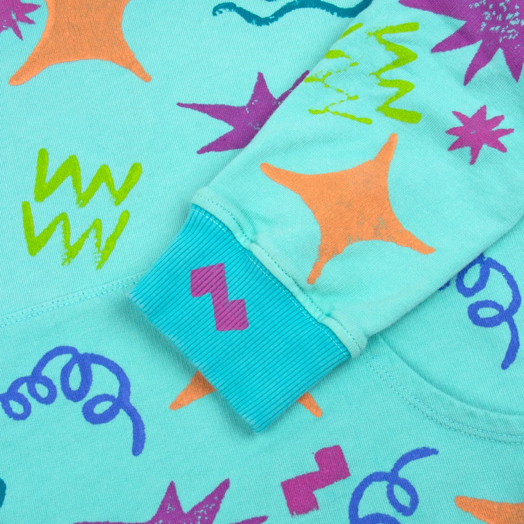 This sweatshirt is a part of our Paint Process Collection and we stamped it with a bunch of wacky multi colored stamps! Each garment is individually cut, sewn, and stamped so the design details of each will be a unique expression that’s just for you!